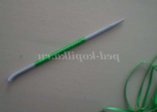 6. Обмотуємо спицю зеленою тасьмою, приклеюємо кінець тасьми.