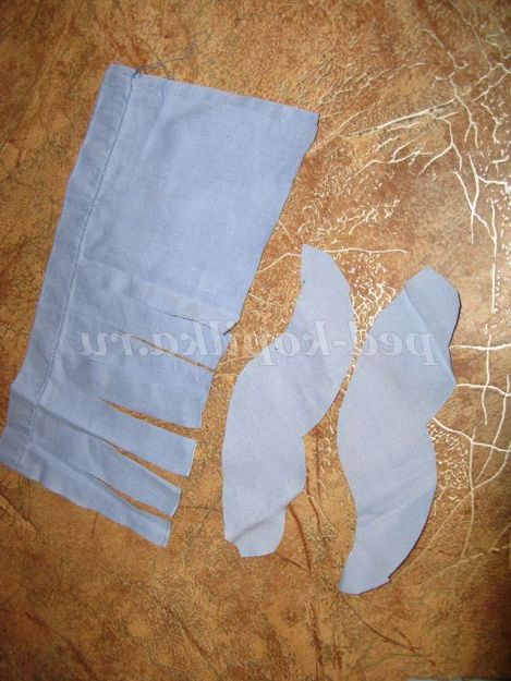 Окремо на картоні обвела чубчик і по ній вирізала дві деталі з блакитної тканини. З неї ж, відрізавши смугу розміром 30 на 15 см, зробила гриву. Один край тканини було оброблено, а другий я надрізала бахромою.