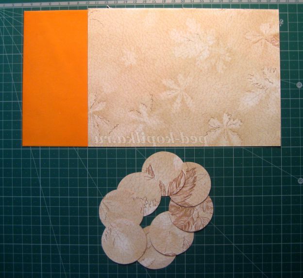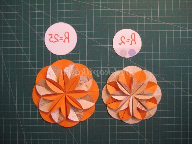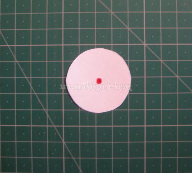 1. Вибираємо двосторонню папір для квітки. Вирізаємо кола R=2см, 8штук.