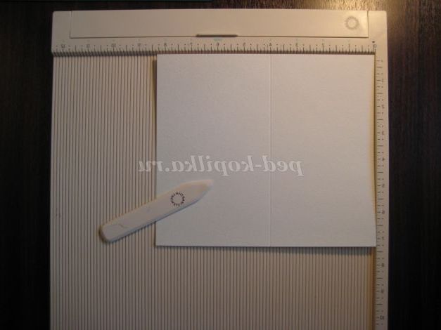 14. Квітка поки відкладаємо в сторону. Беремо акварельний папір або папір для креслення для основи листівки. З допомогою дошки робимо лінію вигину.
