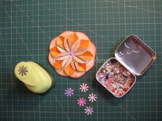 21. Оформляємо серединку квітки з допомогою діркопробивача і полубусины
