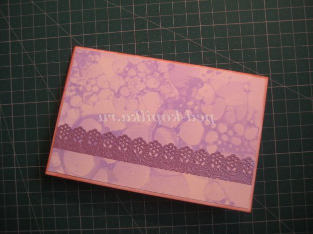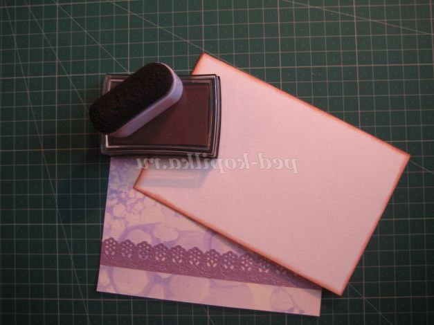 24. Бордюр приклеюємо до підкладки для открытки.Основу листівки можна затонувати з допомогою штемпельної подушечки.