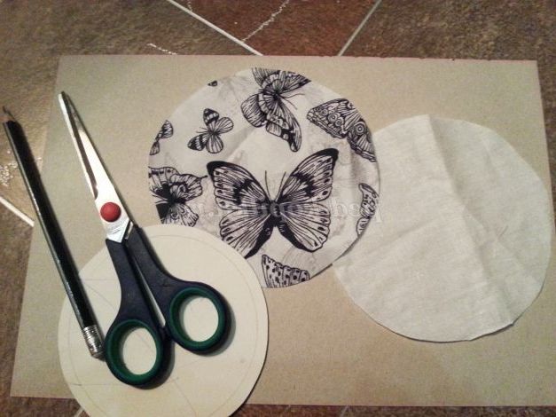 8. Вирізаємо голову з картону, а з білої тканини вирізаємо деталь з припусками 1,5 див. Обтягуємо картон тканиною, закріплюючи клеєм ПВА. Зверніть увагу, що картон повинен бути білим з лицьового боку, т. к. тканина може просвічувати.