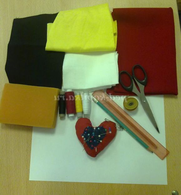- тканина червоного, чорного, білого та жовтого кольорів;