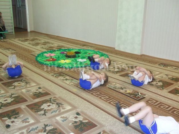 Вихователь: Ми добре попрацювали, і я сподіваюся, що дереву ми допомогли, а тепер пора йти далі. Дивіться, перед нами глибока яма з берегом вузьким. Пройти по ньому просто складно, значить підемо боковим приставним кроком. Будьте обережні, не штовхайте один одного, а при необхідності не забувайте допомагати товаришеві.