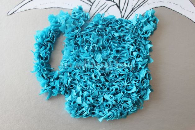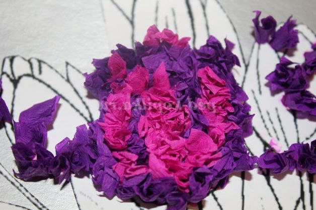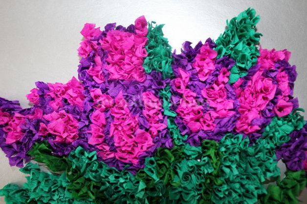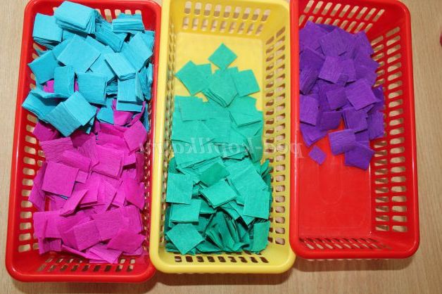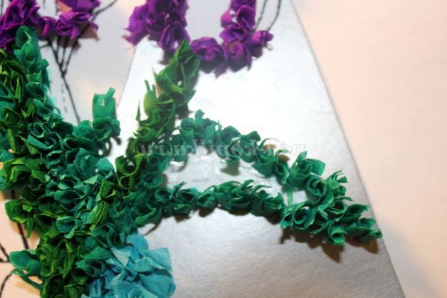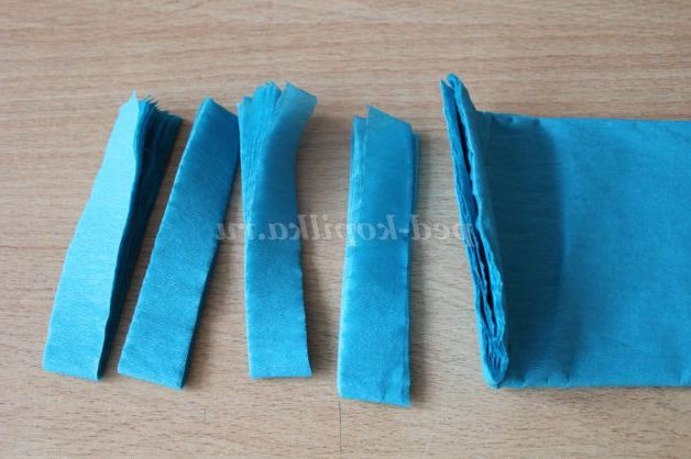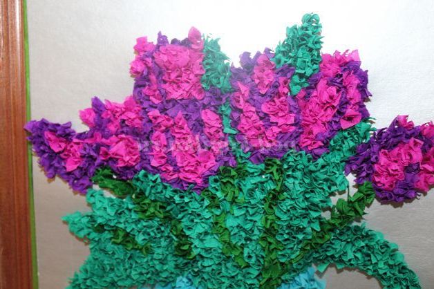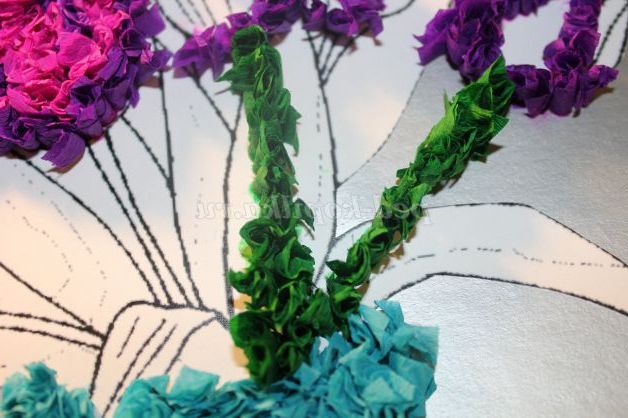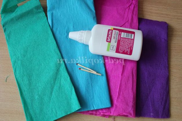 - гофрований папір різних кольорів (два відтінки зеленого,блакитний, два відтінки бузкового);