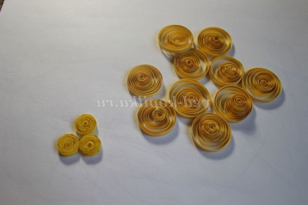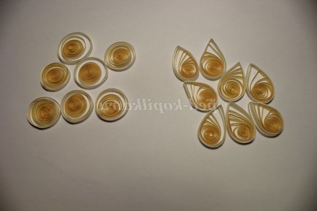 Підготуємо елементи і будемо склеювати нарциси, нам знадобиться 6 спіралей, яким ми надаємо форму "Краплі".