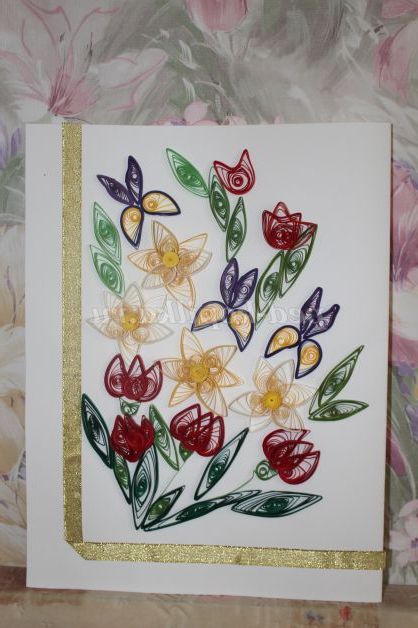 На створення листівки мене надихнули весняні квіти тюльпани, нарциси, іриси.