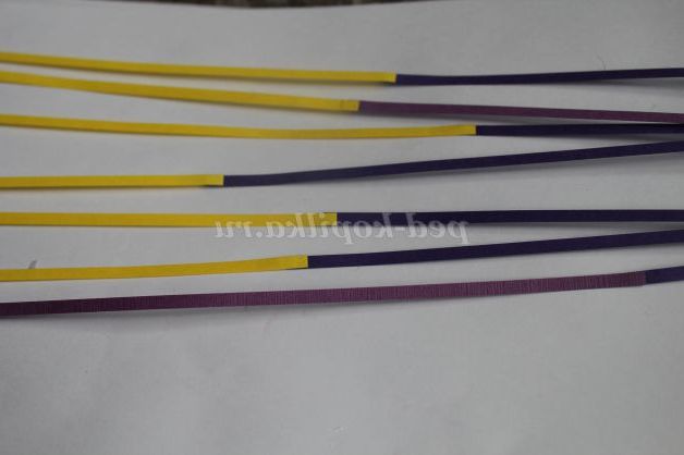 Тепер склеим смужки для майбутніх ірисів, підбираючи відтінки жовтого і фіолетового кольору.