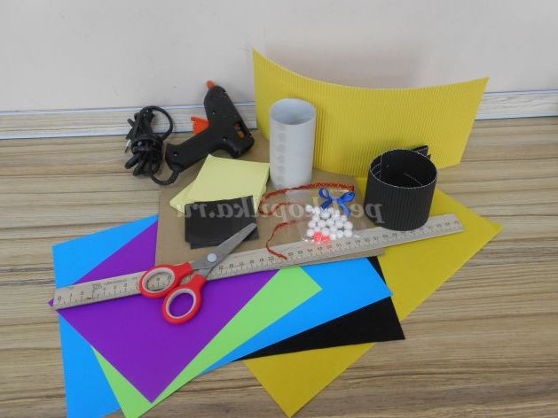 Ми закінчили з великими деталями і переходимо до дрібних, їх ми виготовляємо з смуг гофрованого картону, його можна нарізати на різаку або заздалегідь нарізати канцелярським ножем (цю роботу краще виконати дорослому!)