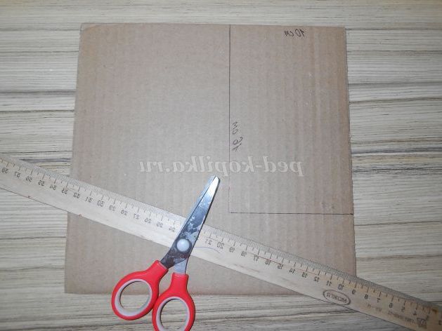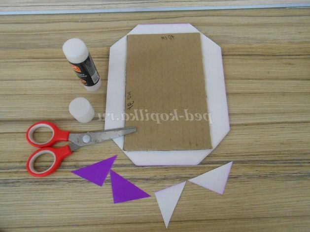 Розмітити на картоні прямокутник зі сторонами 10 і 16 см, для дітей молодшого віку можна дати обвести шаблон, вирізати заготовку-основу