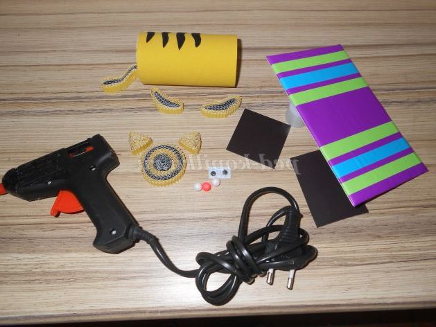 Приступаємо до оформлення та складання: тулуб кота можна прикрасити смужками або плямами, кому як подобається