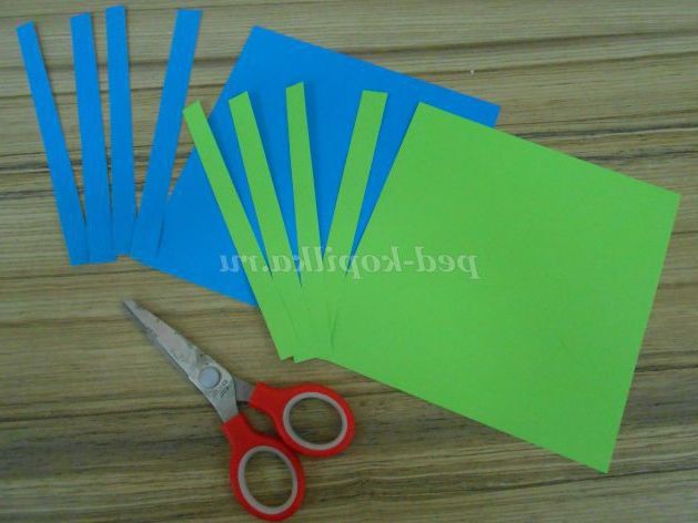 З паперу контрастних кольорів нарізати смужки шириною 1 см і довжиною 14см стільки, скільки хочеться