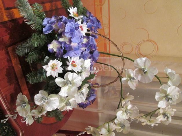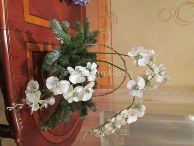 Гілки білої орхідеї розміщуємо в двох рівнях: дві зверху і одну знизу, шляхом втыкания