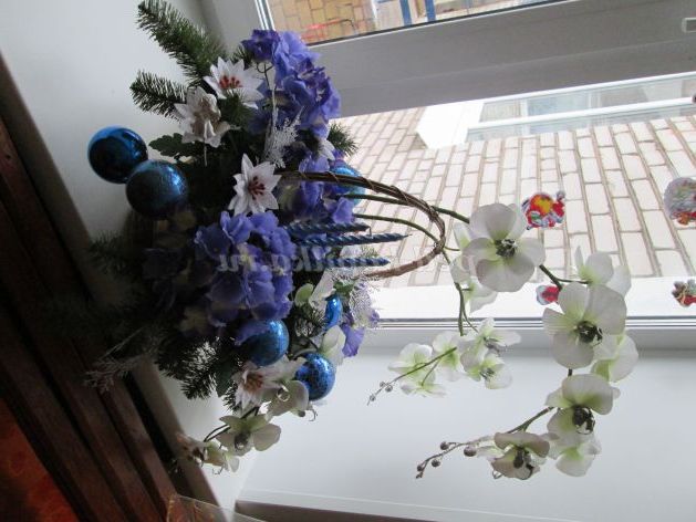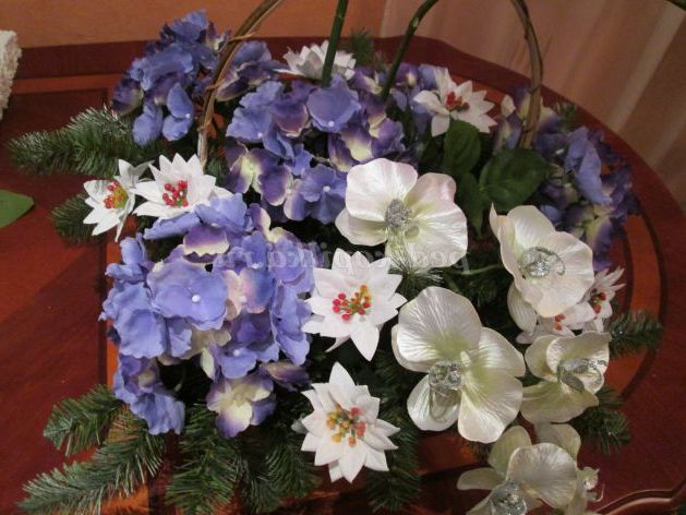 -Штучні квіти: орхідеї 3 шт., гортензії 5шт., пуансетії 5шт.
