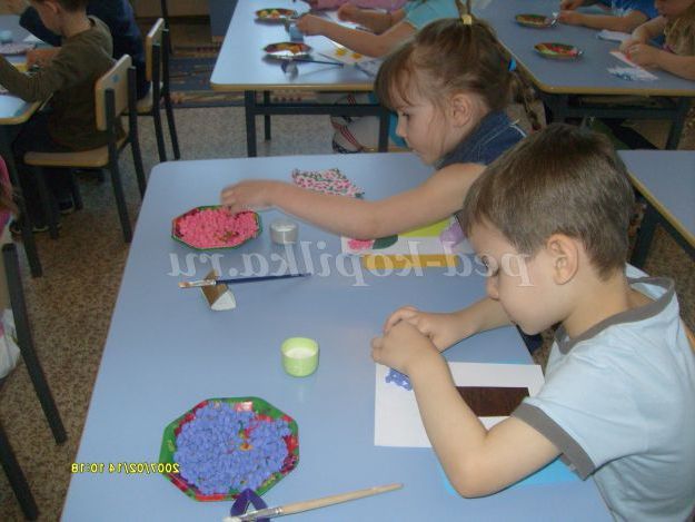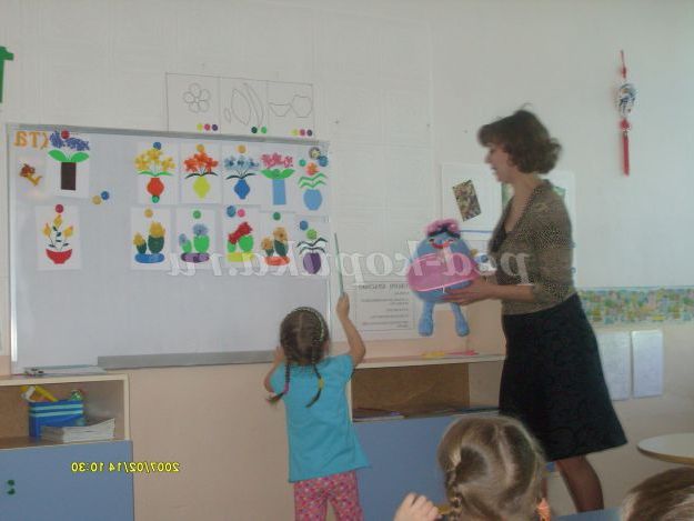 Вихователь: - Ми тебе Капітошка здивуємо, тому що квіти будуть незвичайні. А допомагати хлопцям в роботі буде музика, поки вона звучить, ви робите квіти.