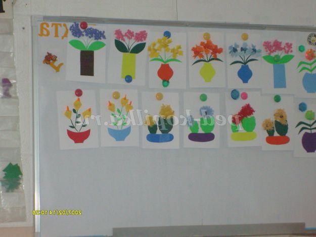 Вихователь: - Зараз ми оформимо вітрину квіткового магазину. Свої квіти принесуть діти, які робили квіти
