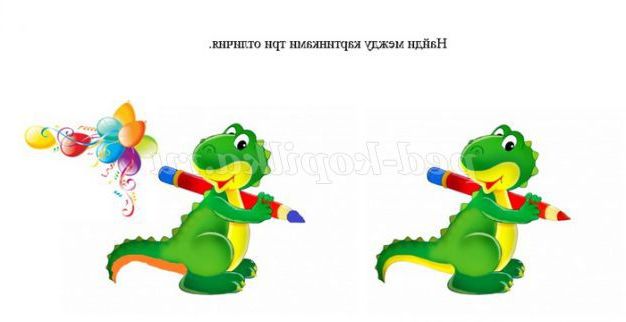 Дитині пропонується розглянути дві на перший погляд схожі картинки відзначити в них всі відмінні елементи малюнка.