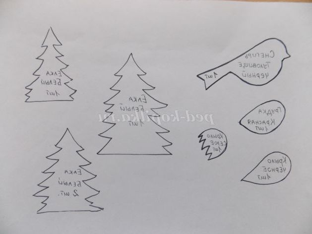 З більш тонкого пінополіетилену за шаблонами вирізаємо ялинки.