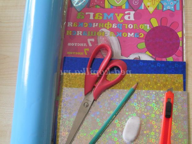 Папір голографічна самокляющаяся. Ножиці. Канцелярський ніж. Клей ПВА. Бісер.