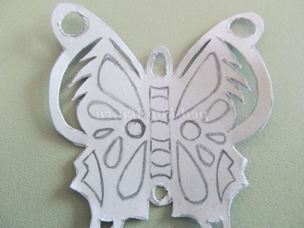 Малюємо шаблон метеликів. Вирізаємо крила канцелярським ножем.