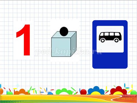 Матеріали та обладнання: презентація «слідами м'ячика Непосиди», мультимедійне обладнання, набори цифр і знаків на кожну дитину, «Танграм» на кожного дитини, листок в клітинку, олівець, розмальовка «З'єднай крапки від 1 до 10»