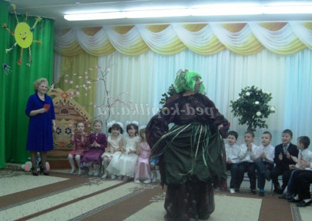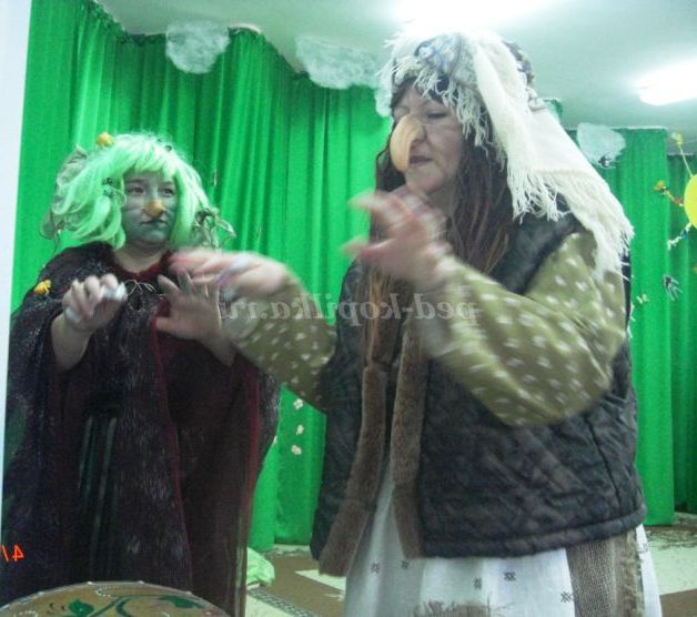 Дорослі виконують ролі ведучої, Кощія, Потвори і Баби Яги.