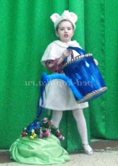Ведуча котиться клубок. З теремочка виходить Мишка, поливає квіти і співає пісню.