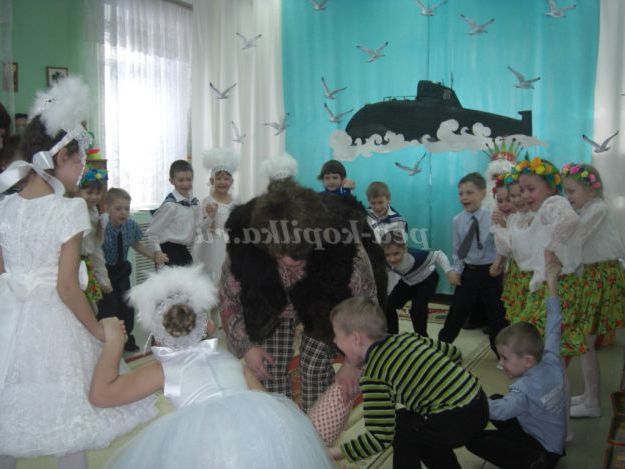 Після пісні діти дарують татам подарунки, виготовлені своїми руками, і шикуються в розсипну.