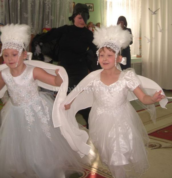 На закінчення танцю хлопці тікають за двері, виводять лебідок.