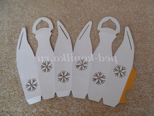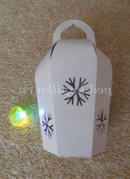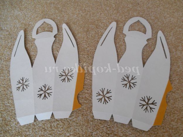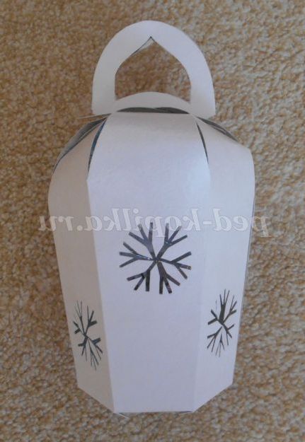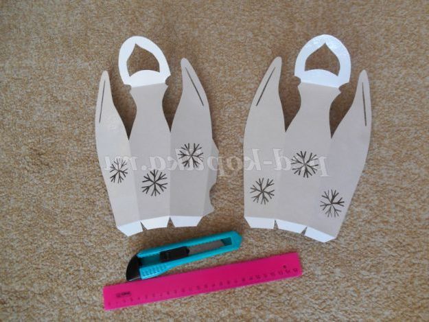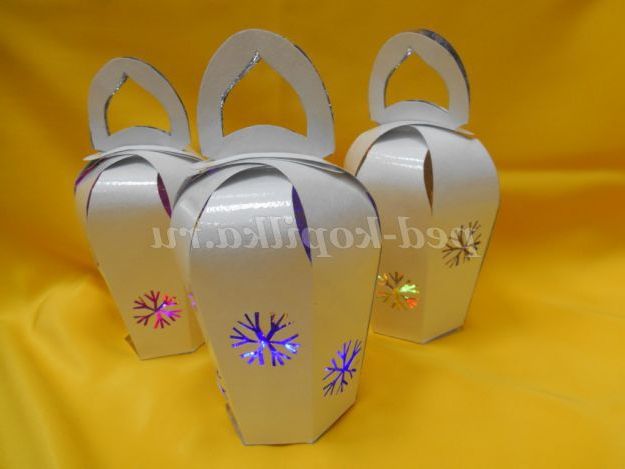 Призначення. Такі ліхтарики можуть служити прикрасою інтер'єру, використовуватися як сюрпризный момент (освітити шлях, допомогти у пошуках Діда Мороза або начаклувати подарунки). Я виготовила сім ліхтариків для танцю Білосніжки і гномів на новорічному святі. Ліхтарики можуть бути великими або маленькими, в залежності від того на скільки Ви збільшите або зменшіть викрійку. Вони можуть бути різнокольоровими, з різними прорізами - це як підкаже Ваша фантазія.