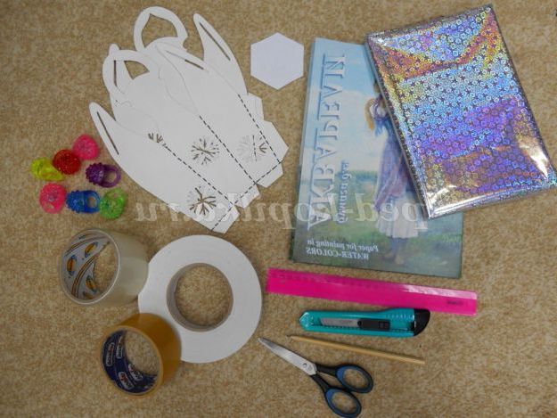 накладаємо на папір для акварелі (два аркуші А4 і шматочок для денця), вимальовуємо, обклеюємо прозорим скотчем (для міцності і глянцю) і вирізаємо.