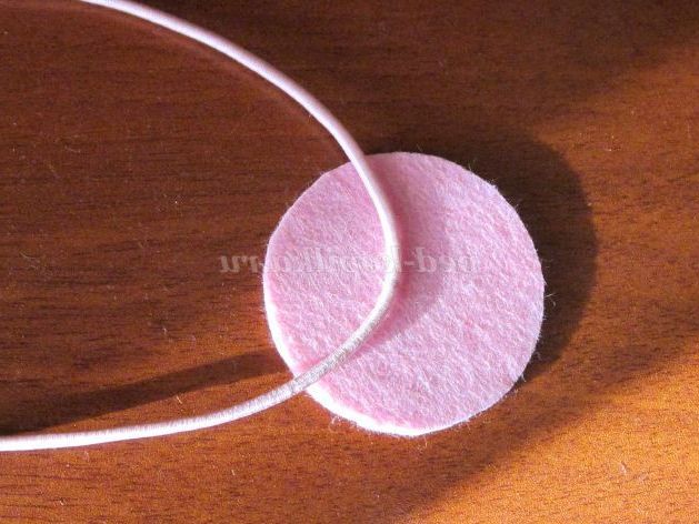 11. Закріплення квітів на шнурок. На середину шнурка закріпити з допомогою клею " момент " коло з фетру.