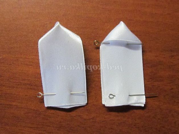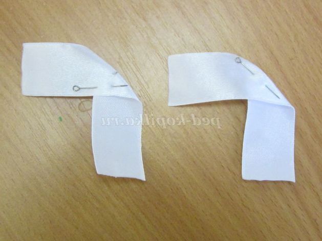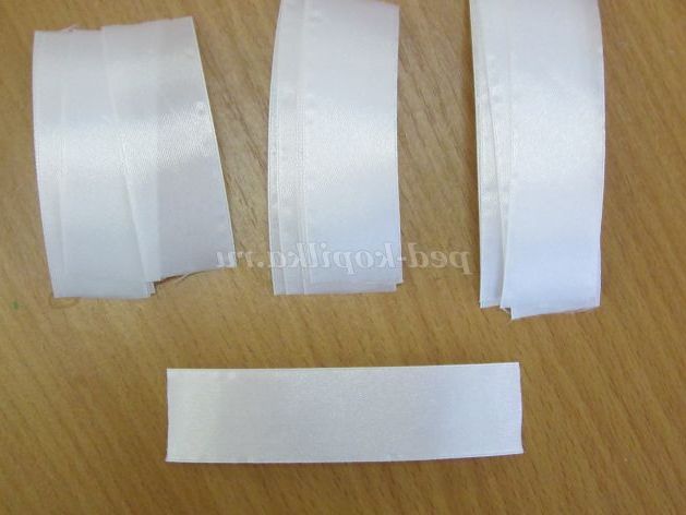 8. Для виготовлення маленьких квітів на кольє: нарізати білу стрічку на відрізки довжиною 7см - 5 шт. і рожеву довжиною 6см - 5 шт.