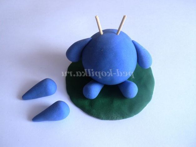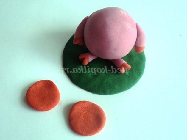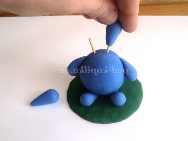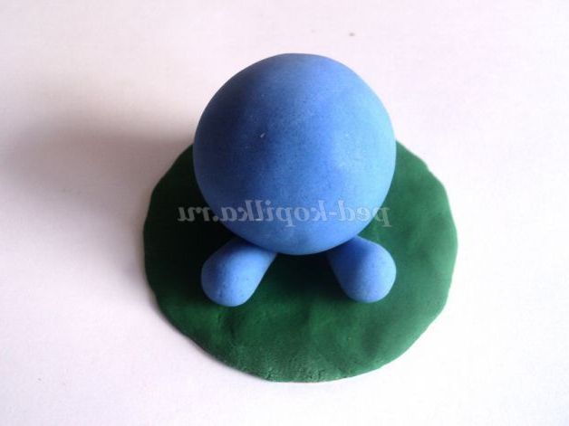 6. На ноги прикріпити кульку, не забуваючи змочити водою місце з'єднання.