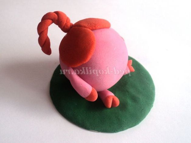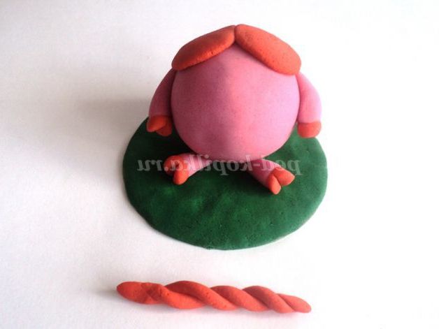 1. Кулька з фольги обклеїти світло - рожевим тестом. Для рук і ніг скачати крапельки з світло-рожевого тіста і кульки з яскраво-рожевого тесту.