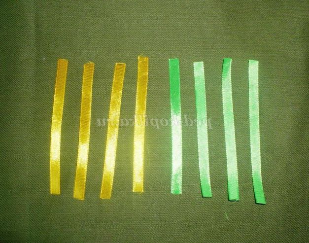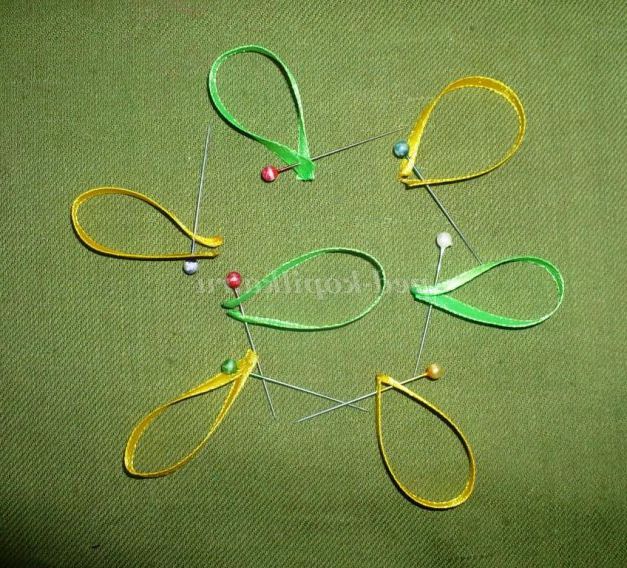 Сцепляем кінці стрічки голочкою. Кінці можна обробити над свічкою, щоб вони не розпускалися.