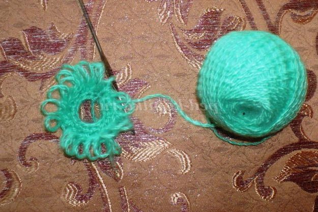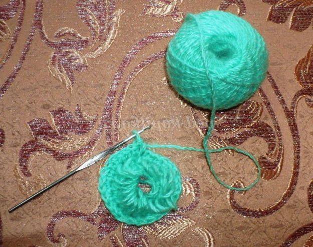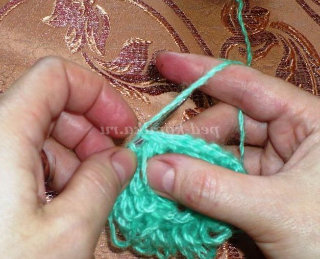 З'єднуємо в коло і далі в'яжемо один ряд довгими петлями (в'язка «хутро»).