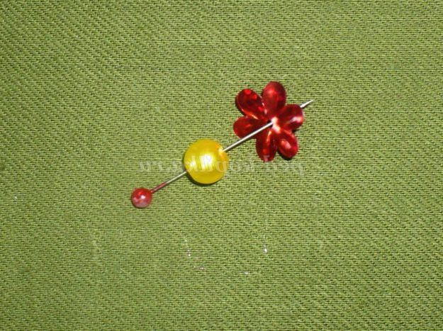 Прикріплювати троянди до кроні ми будемо з допомогою голки-шпильки, намистинки і пайетки.