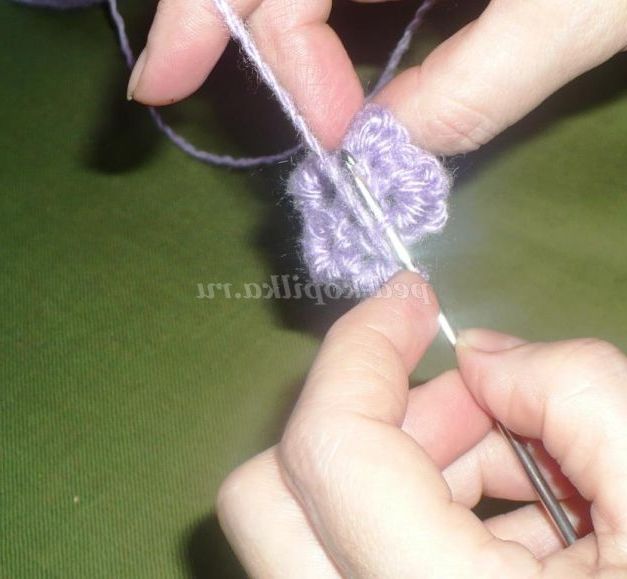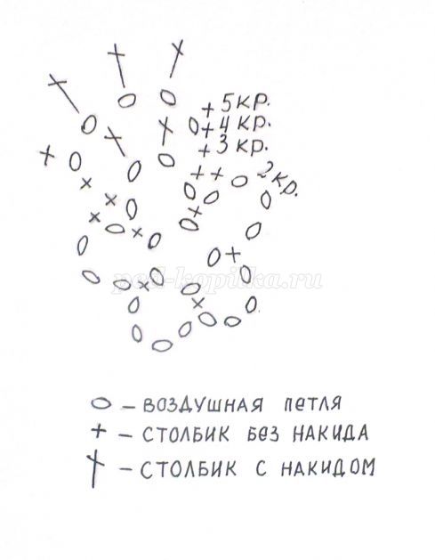 При в'язанні 4 ряди схеми ланцюжок з повітряних петель прицепляем з задньої сторони трояндочки.