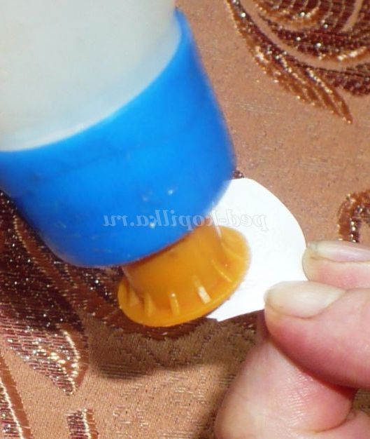 Зміцнюємо крону на стовбурі. Для цього вирізаємо з картону круг трохи більше діаметра стовбура. Наносимо на нього клей з обох сторін.