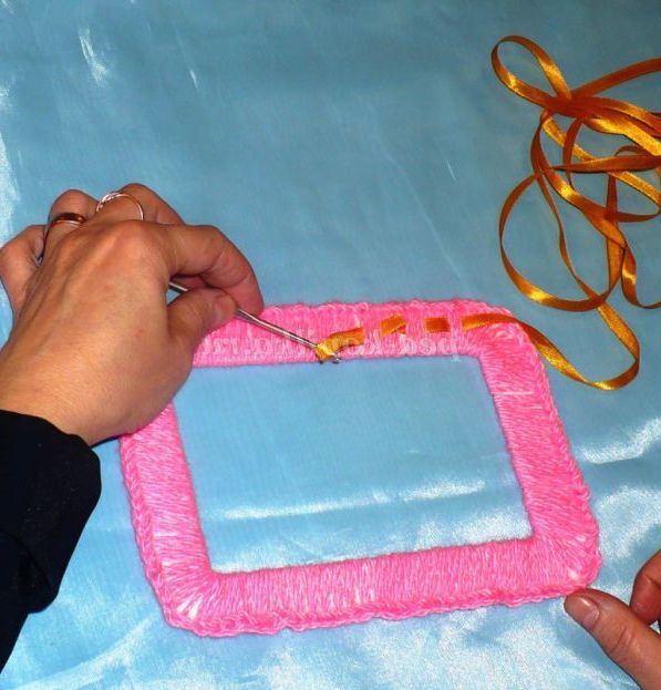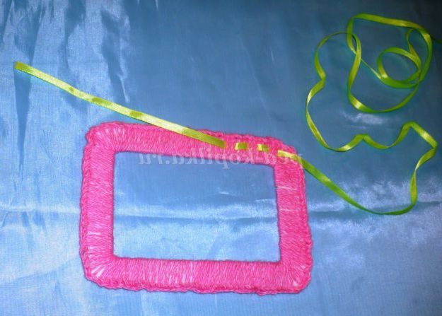 З допомогою гачка протягуємо стрічку по периметру рамки, дотримуючись відстань.