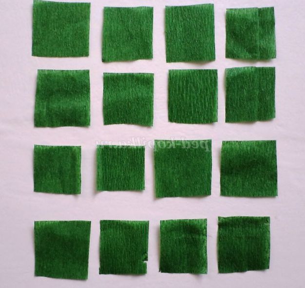 6.Нарезать із зеленої крепованого паперу квадрати 3 див. на 3 див.