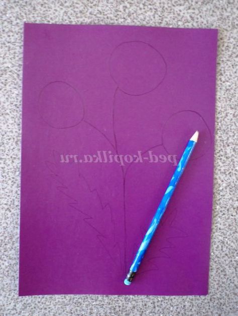 2. Робимо начерк квітки на аркуші кольорового картону простим олівцем.
