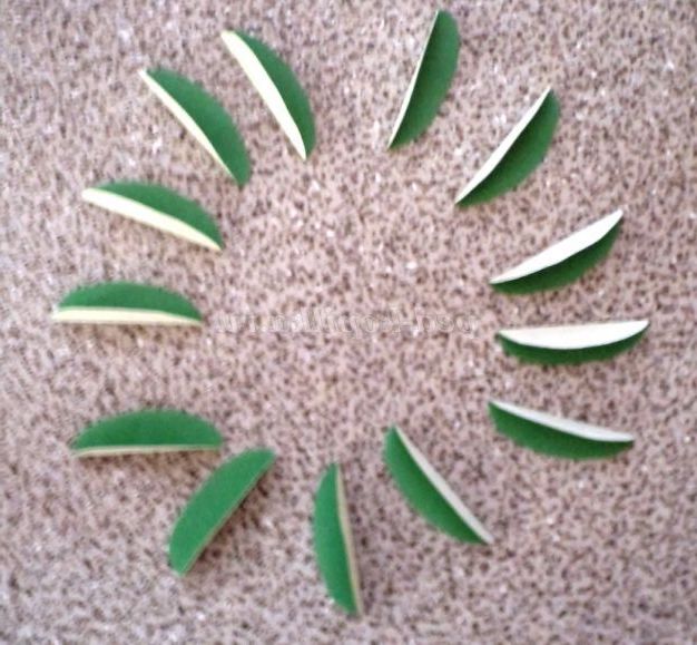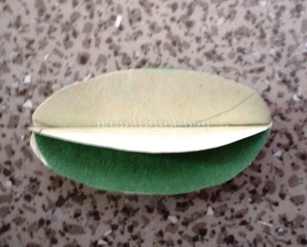 6.Сгибаем зелені овали вздовж, всередину кольором.