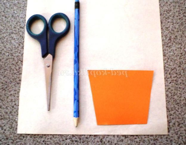 2.Изготавливаем квітковий горщик. На лист кольорового паперу прикладаємо шаблон горщика, обводимо олівцем і вирізаємо.