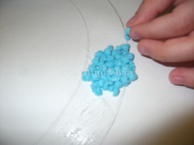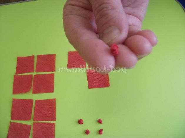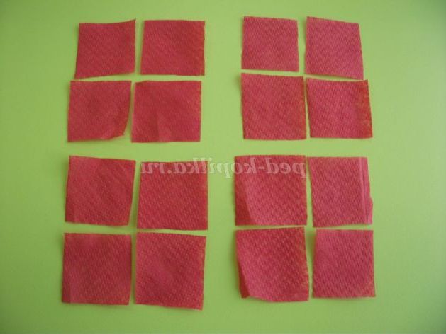 Далі приступаємо до заготовок .Салфетку розрізати на 4 частини і скачати з них невеликі кульки.