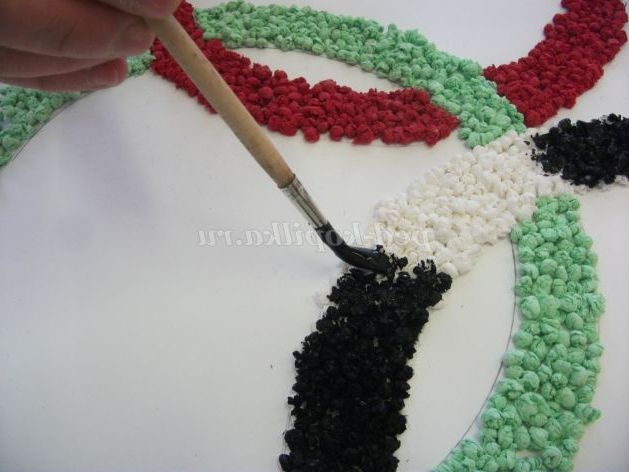 У нас вийшло п'ять тарілок з кульками з серветок.