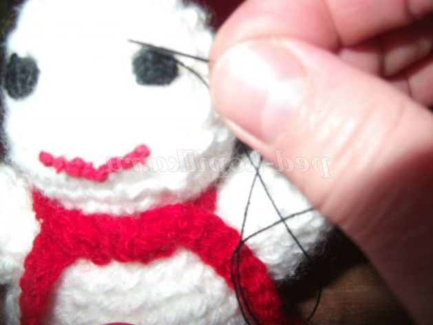 В'яжемо два однакових по величині і формі, з чорних ниток кола (маленькі, круглі оченята). Пришиваємо їх.