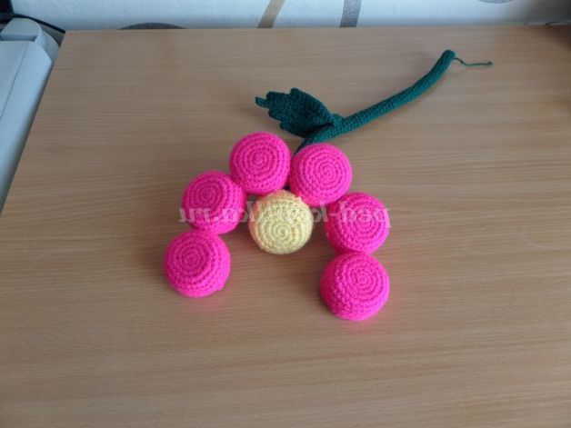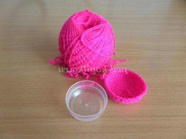 Так обв'язати треба ще 5 кришок рожевим кольором і 1 жовтим кольором.